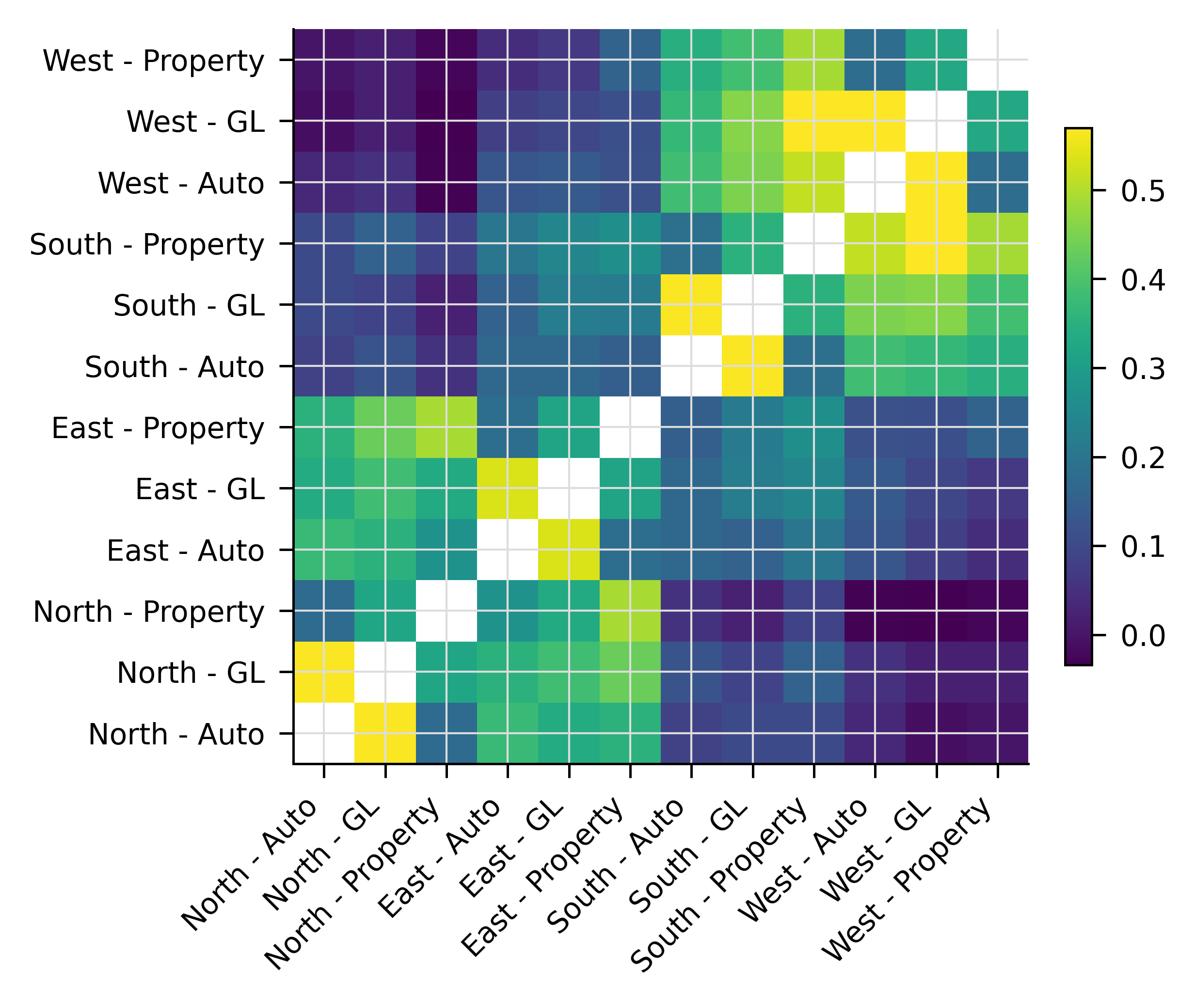 Are you modeling correlation of loss ratios or correlation of losses? It is a surprising empirical fact that the former is often greater than the latter, leading to the conclusion that correlation in underwriting results is driven by correlation in premium more than loss, see Mildenhall (n.d.). These findings highlight a stark property-casualty split. Property tends to be loss-volatility driven, with loss correlation caused (and explained) by geographic proximity. Casualty tends to be premium-volatility driven, with loss ratio correlation caused by (account) underwriting and the underwriting cycle.